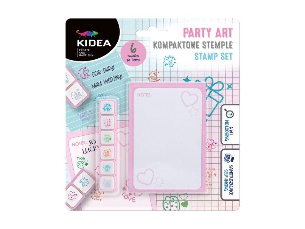 Kidea pečiatky 6ks sada s notesom PARTY (D)